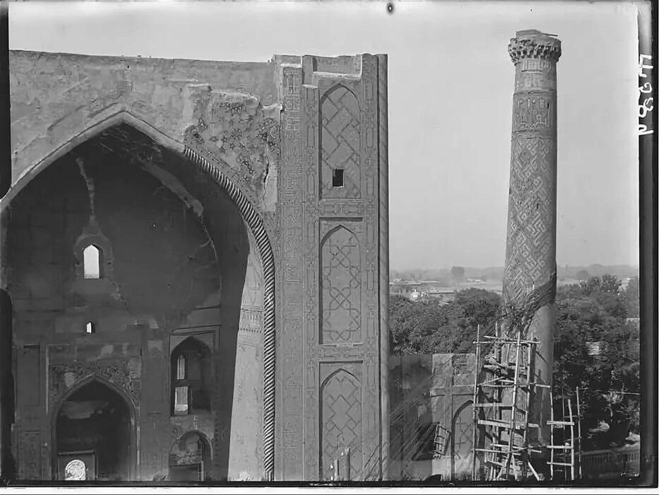 Падающий минарет медресе Улугбека поддерживают канаты
