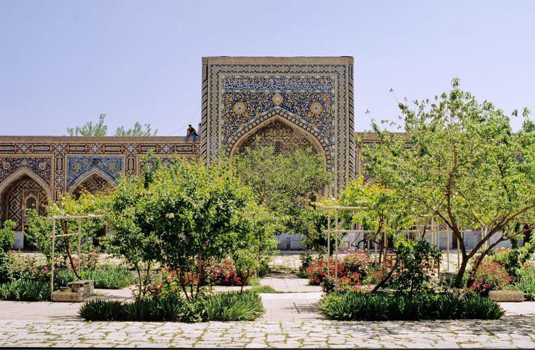 Восточный ряд худжр во дворе медресе Тилля-Кари