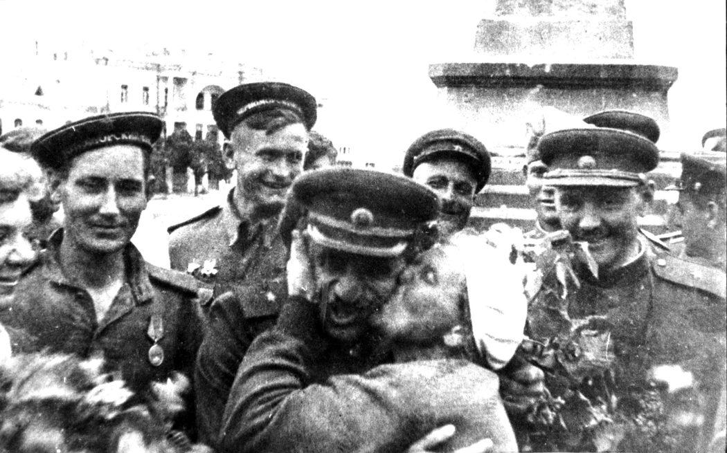 Жители Севастополя встречают воинов-освободителей.