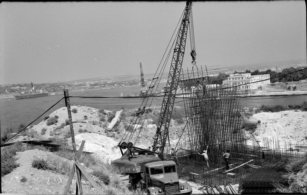 На строительстве обелиска городу-герою на мысе Хрустальном
