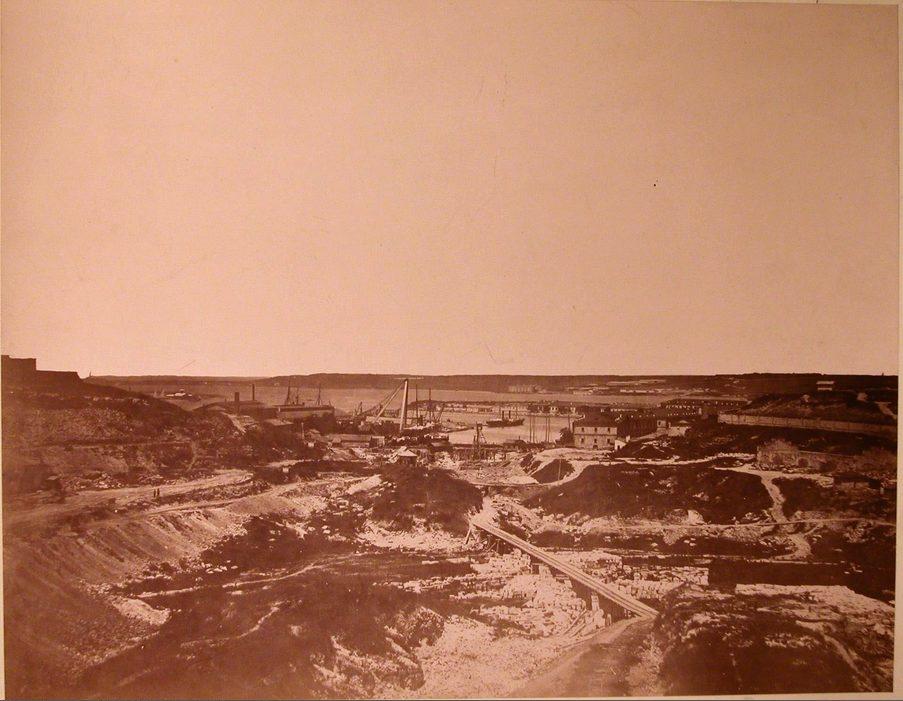 Общий вид строительных работ по сооружению Алексеевских доков в корабельной бухте