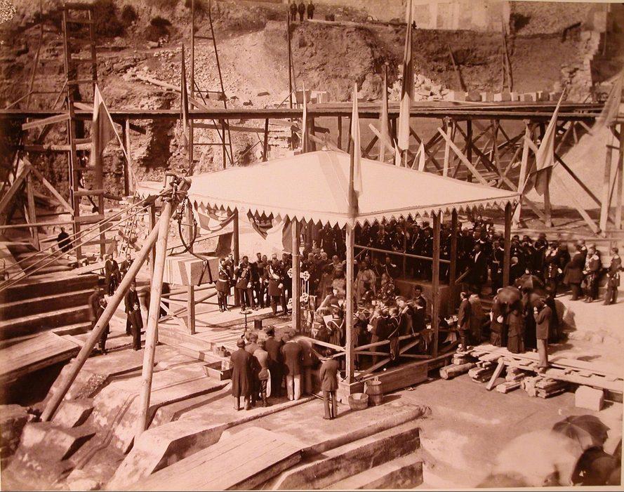 Участники закладки одного из Алексеевских доков (Западного) во время молебна