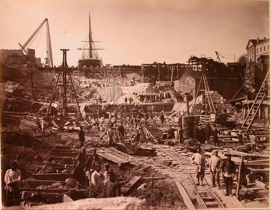 Общий вид строительства одного из Алексеевских доков в корабельной бухте