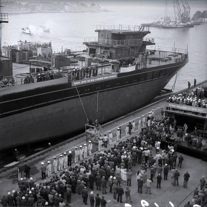Перед спуском на воду плавкрана "Витязь"