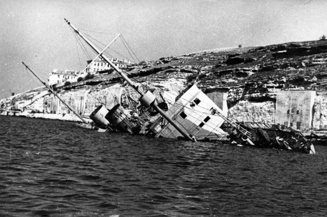Разбомбленный теплоход "Абхазия" у Сухарной бухты
