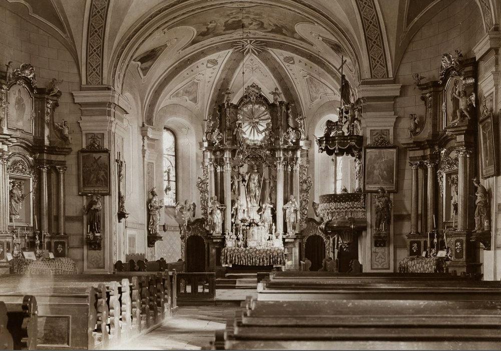 Dolní Vltavice, kostel sv. Linharta, hlavní loď a presbyterium
