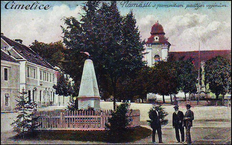 Čimelice. Náměstí s pomníkem padlým vojínům
