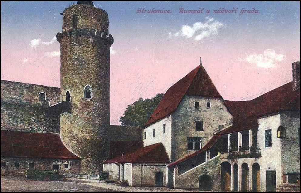 Strakonice. Rumpál a nádvoří zámku