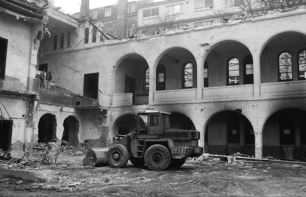 Brno - demolice synagogy: severní a západní (schodovitě se zvyšující) ženská galerie
