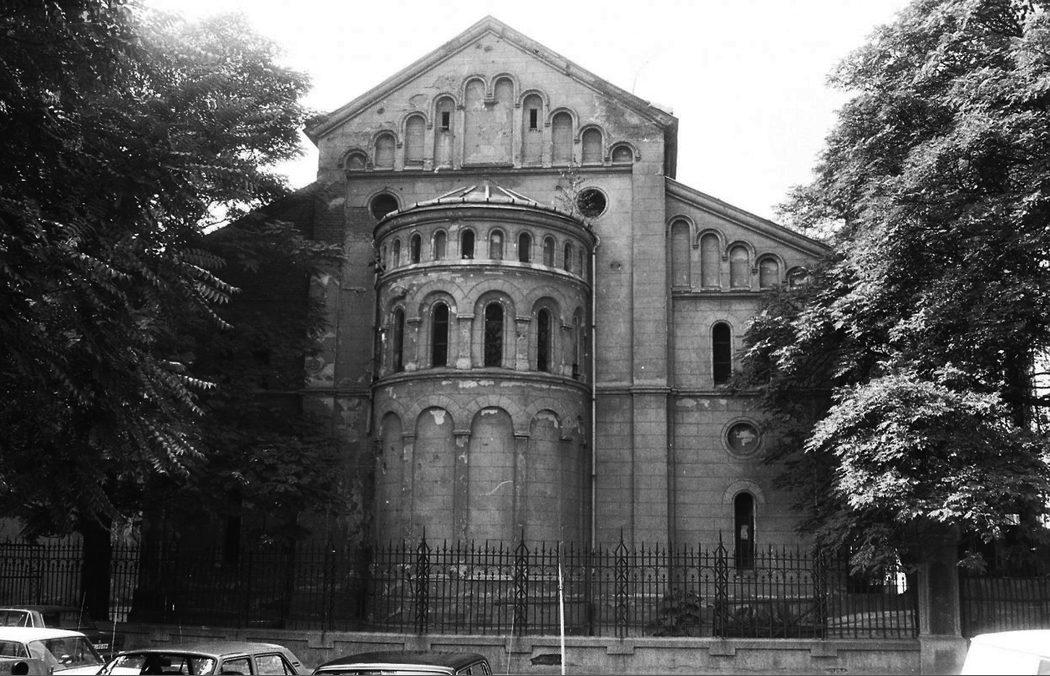Brno - východní strana synagogy s apsidou před demolicí