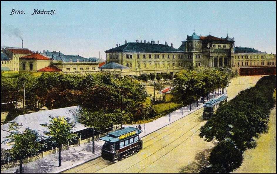 Brno, nádraží. Tramvaje a nádraží