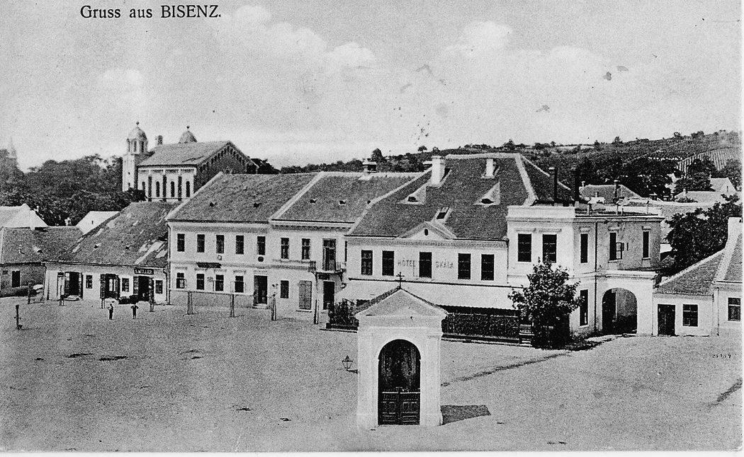 Bzenec, synagoga v pozadí