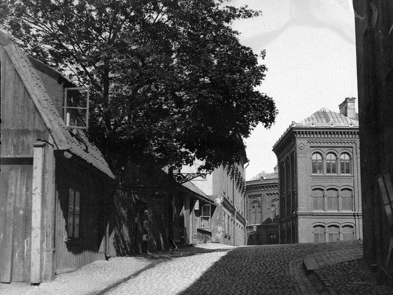 Fredmansgatan österut mot Högre allmänna läroverket å Södermalm, nuvarande Södra latins gymnasium
