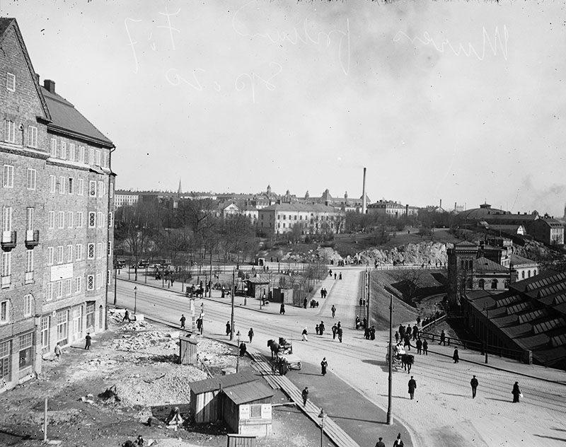 Sankt Eriksplan österut. Atlas verkstäder till höger och i fonden Vasaparken