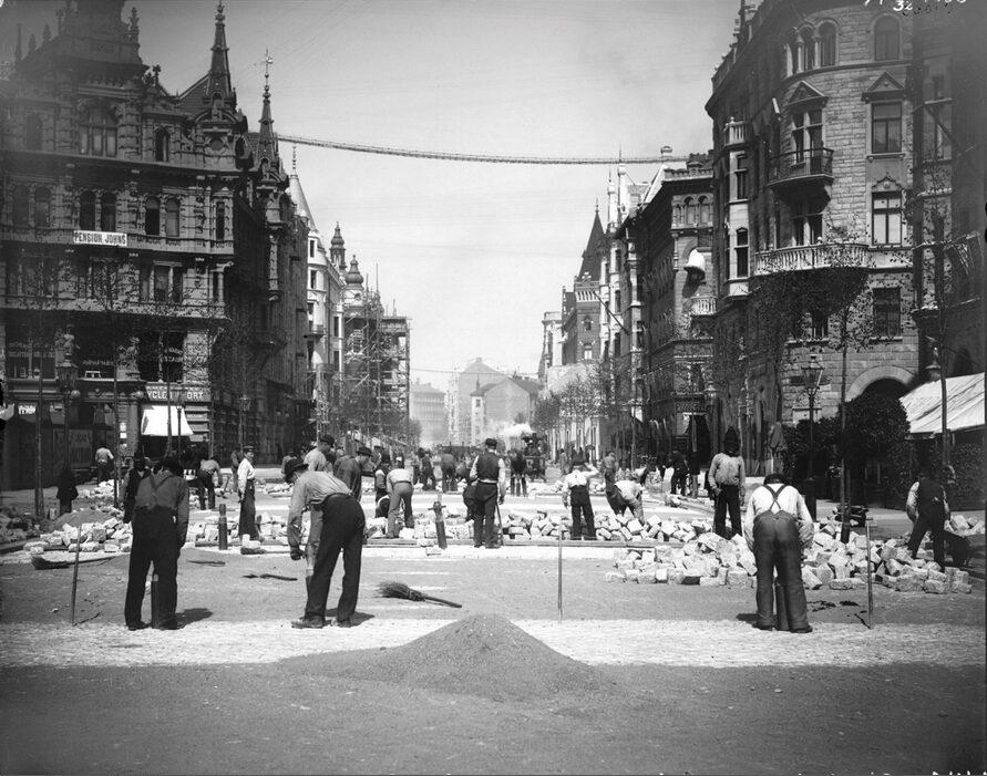 Stenläggning av Birger Jarlsgatan. Från Smålandsgatan norrut