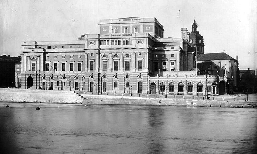 Operans fasad mot Strömgatan. Jakobs kyrka i bakgrunden