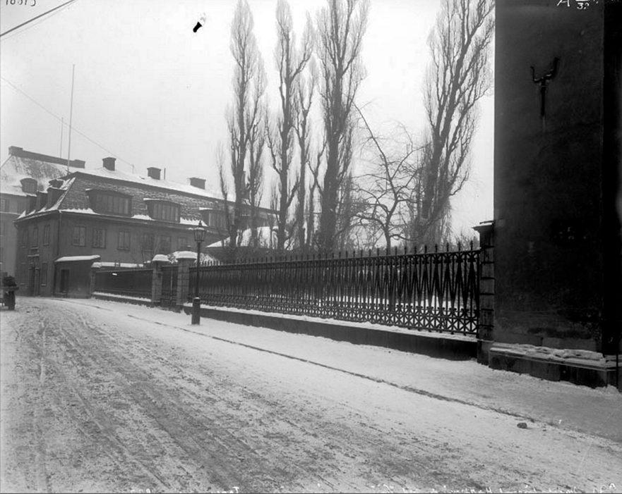 Vinterbild med Jakobs kyrkogård från Västra Trädgårdsgatan