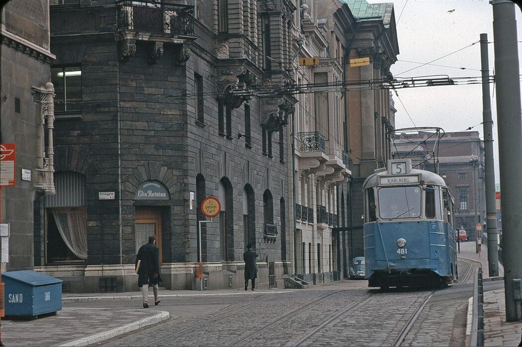 Spårvagn linje 5 på Strömgatan vid Drottninggatan
