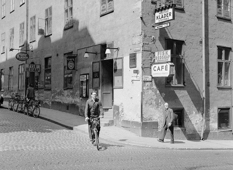 Korsningen Sankt Paulsgatan - Götgatan. Ölcafé på hörnet