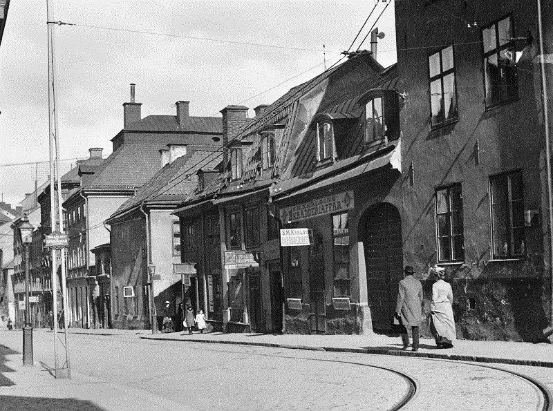 Sankt Paulsgatan österut från Ragvaldsgatan. Sankt Paulsgatan 11, 9, 7 och 5