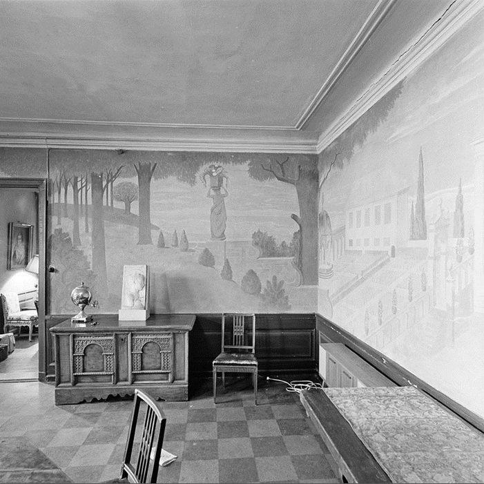 Götgatan 16. Ebba Brahes palats. Interiör med väggmålning