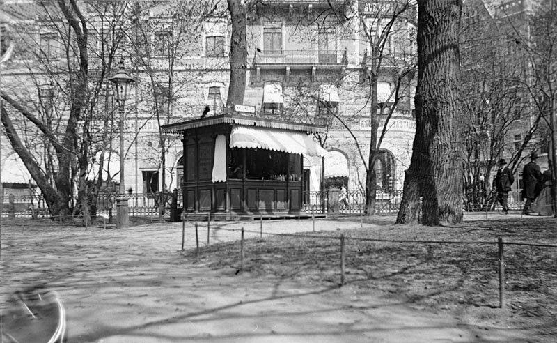 Motiv från Berzelii Park med vattenbutik. I bakgrunden Hamngatan