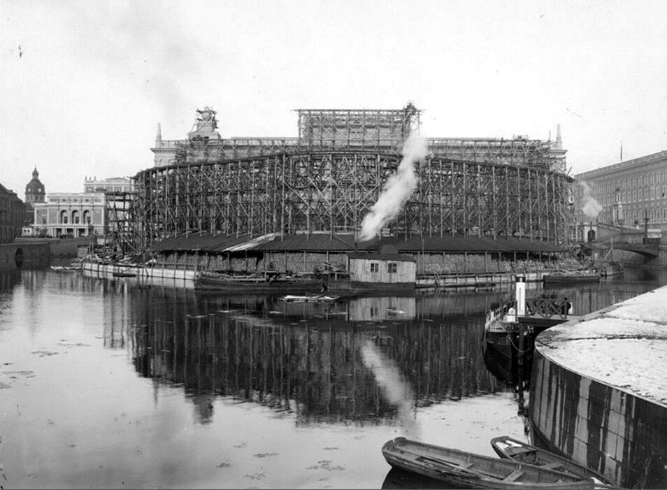 Riksbanken på Helgeandsholmen, mot öster, under byggnad