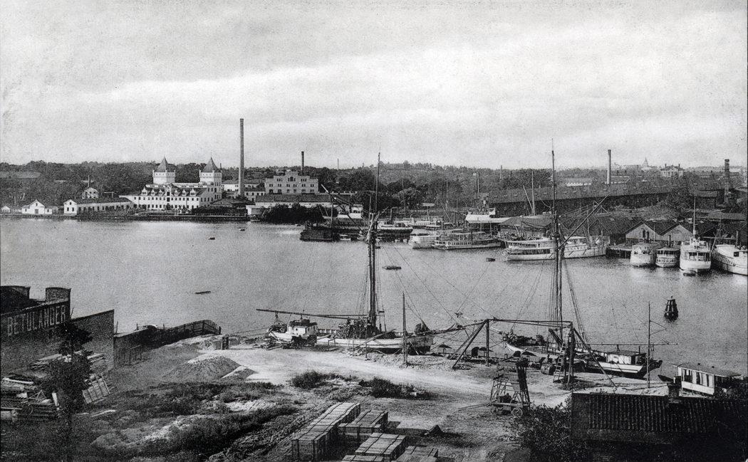 Utsikt från Liljeholmsbron. Reimersholms spritfabrik