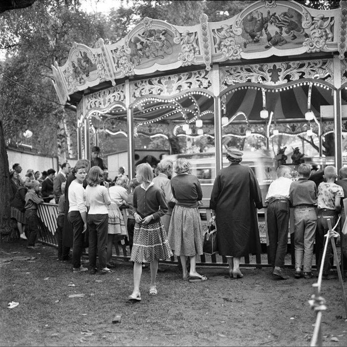 Barnens Dag i Vasaparken. Folksamling vid karusell