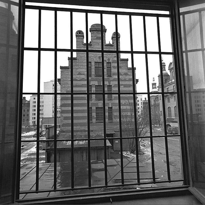 Bergsgatan 48. Utsikt från en cell mot stadshäktet och Polishuset