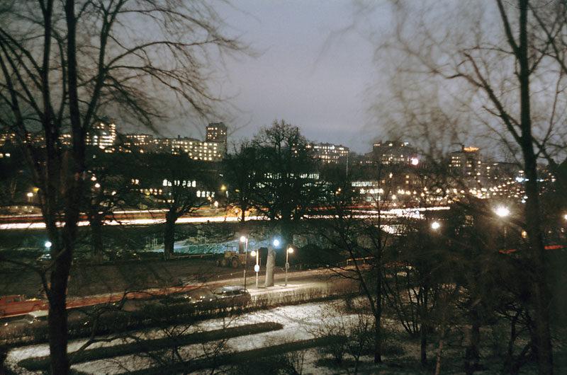 Kvällsmotiv över Fredhällsparken från Vitalisvägen mot nordost över Adlerbethsgatan och Drottningholmsvägen