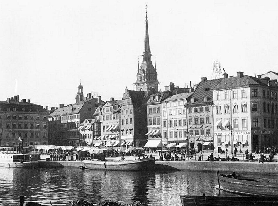 Kornhamnstorg från Slussen. I fonden Tyska kyrkan