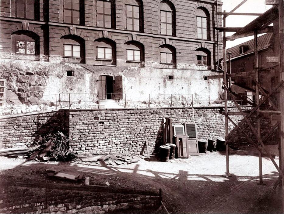 Terrassmur framför nordvästra fasaden av generalstabens hus, Birger Jarls Torg 10