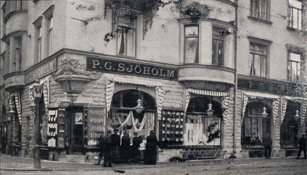 P.G. Sjöholm. Exteriör av butiken