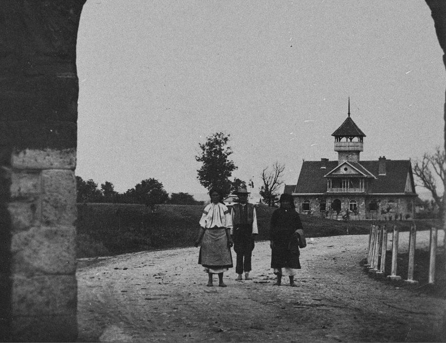 Окопы. Местные жители на фоне пограничной заставы
