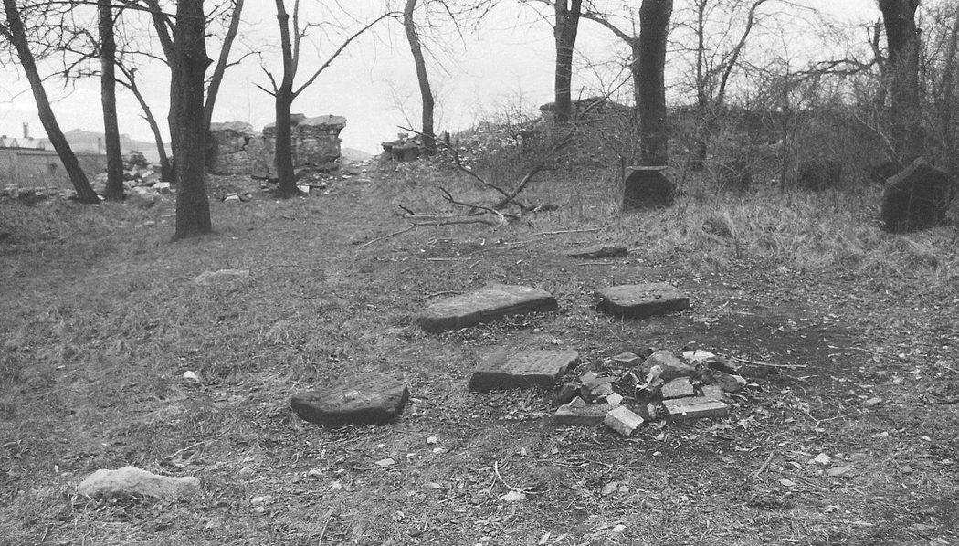 Libochovice, židovský hřbitov, pobořená ohradní zeď a poražené náhrobky