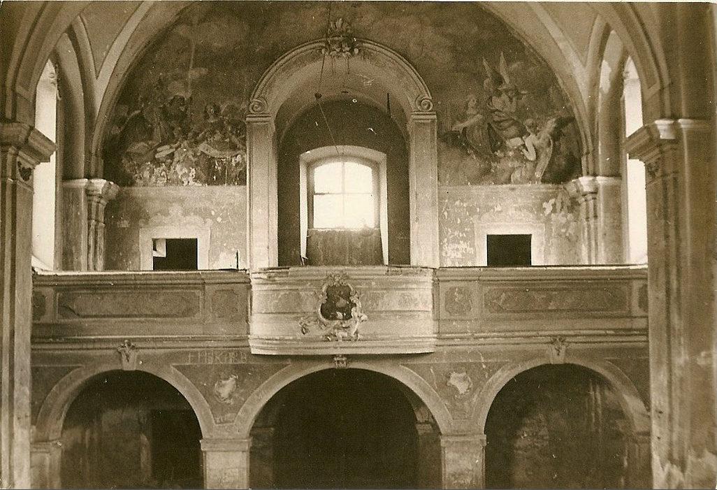 Siřem, kostel Neposkvrněného početí Panny Marie, pohled ke kůru kostela