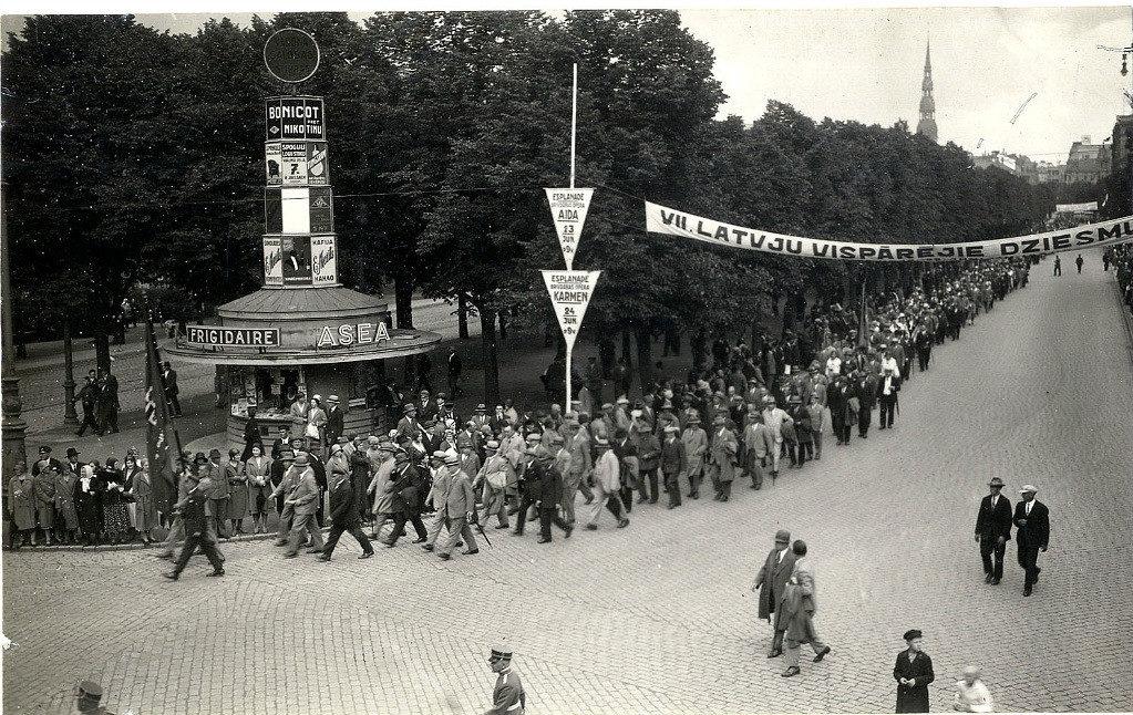 Рига-1931 июнь - шествие участников VII-го Вселатвийского Праздника песни
