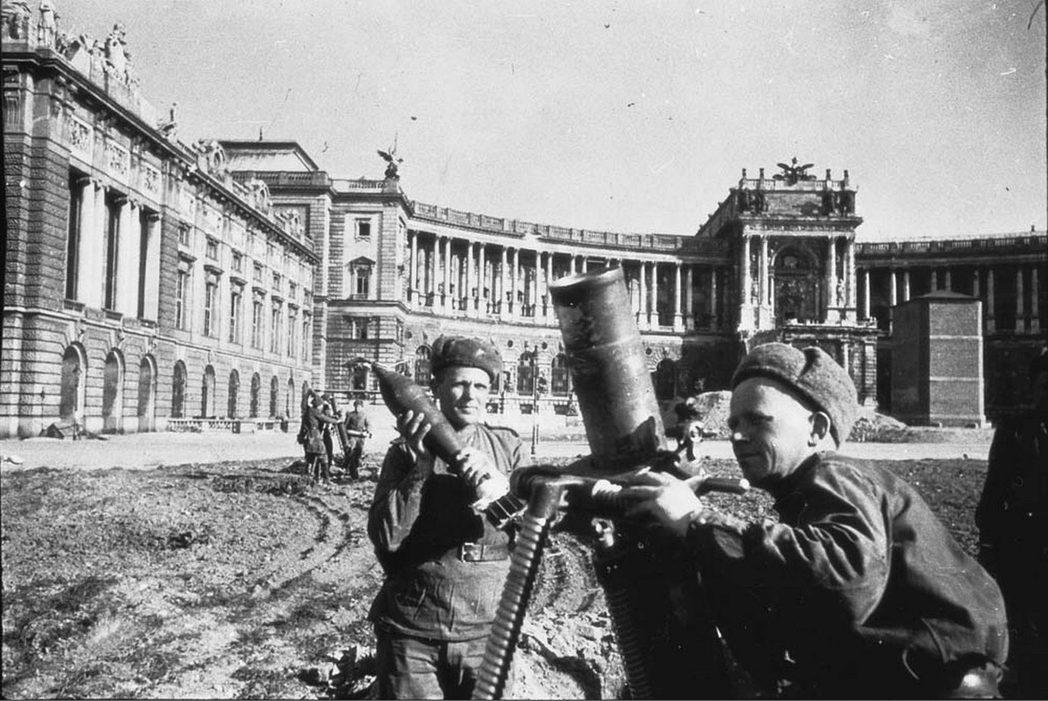Sowjetische Mörsermänner mit Regiments Mörser in Wien