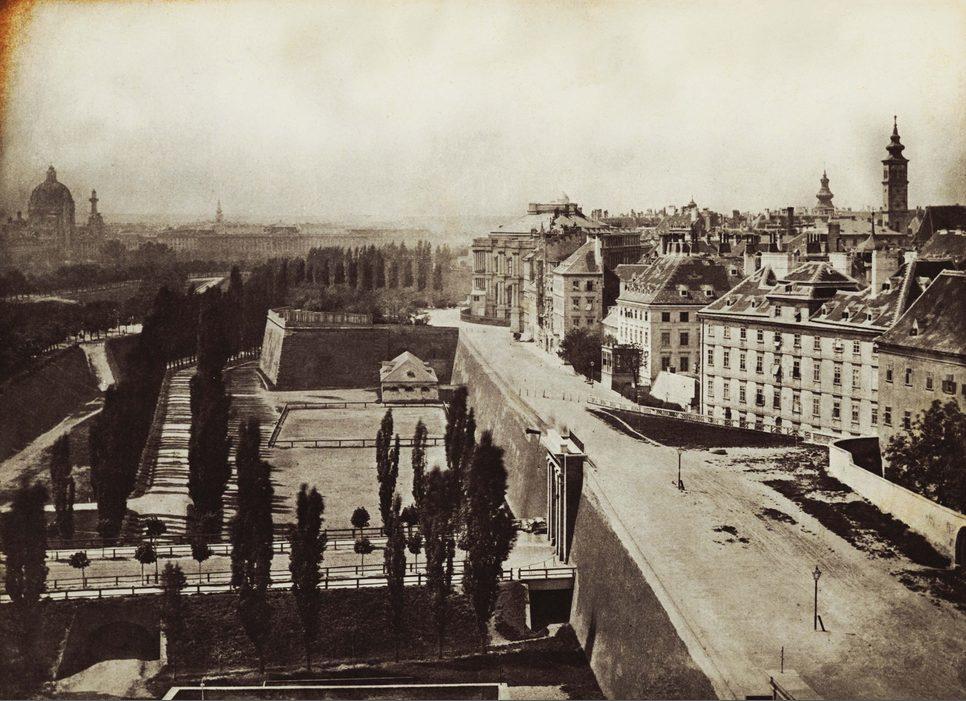 Blick von der Franz-Josefs-Kaserne auf die Dominikanerbastei, Stubentor und Braunbastei. Palais Coburg