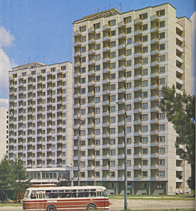 Общежития студенческого городка и автобус ЛАЗ-695М