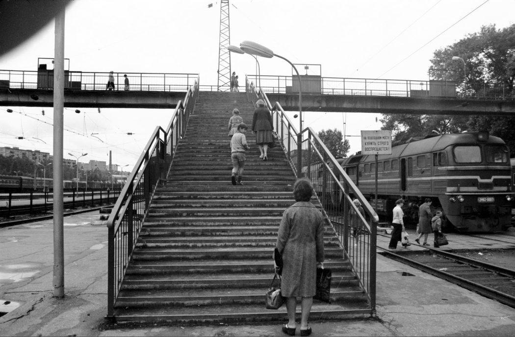 Pedestrian bridge through railroad tracks at Vilnius railway station