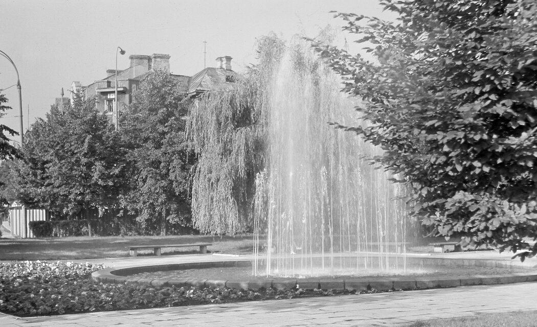Фонтан на нынешней Вашингтонской площади. Вид на дом 8/27 по улице Юозаса Тумас-Вайжгантаса