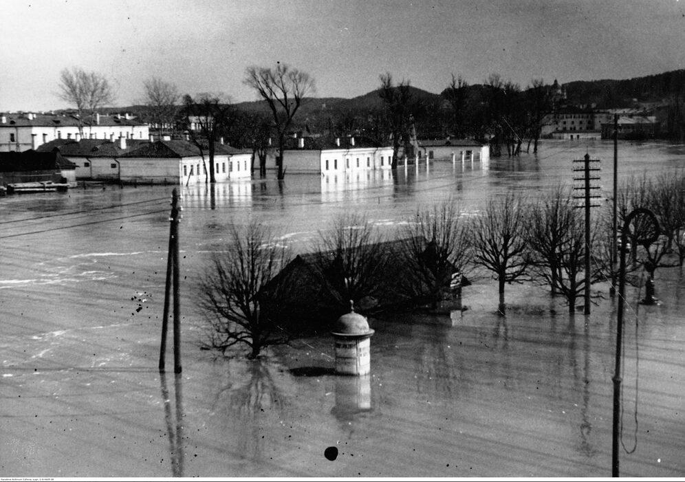 Вид на военные казармы во время паводка