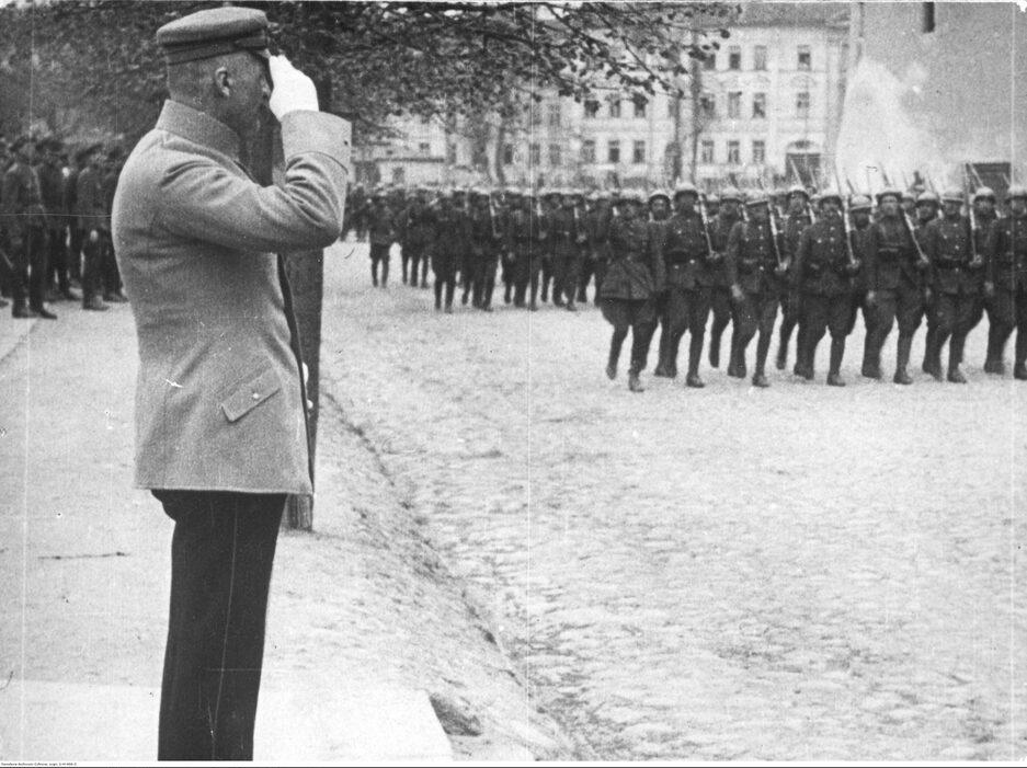 Маршал Юзеф Пилсудский принимает парад войск на Кафедральной площади