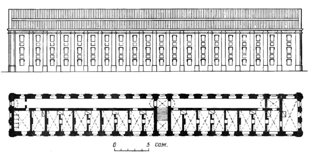 Фасад и план 2-ого этажа келейного корпуса Базилианского монастыря