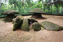 Ariyannur Umbrellas is a prehistoric Megalith burial site situated in Ariyannur in Kandanassery Panchayat of Thrissur District of Kerala. Archaeological Survey of India in 1951 declared it as a centrally protected monument. The site has six umbrella stones or mushroom stones, locally called Kudaikkallu. Of them, four are intact and two are partially broken. . These are part of the larger Kudakkallu Parambu complex which is believed to be from ~2000 BCE.