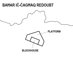 Baħar iċ-Ċagħaq Redoubt is a redoubt in Baħar iċ-Ċagħaq, limits of Naxxar, Malta. It was built in 1715–1716 by the Order of Saint John as one of a series of coastal fortifications around the Maltese Islands. Today, the redoubt still exists and is in relatively good condition.
