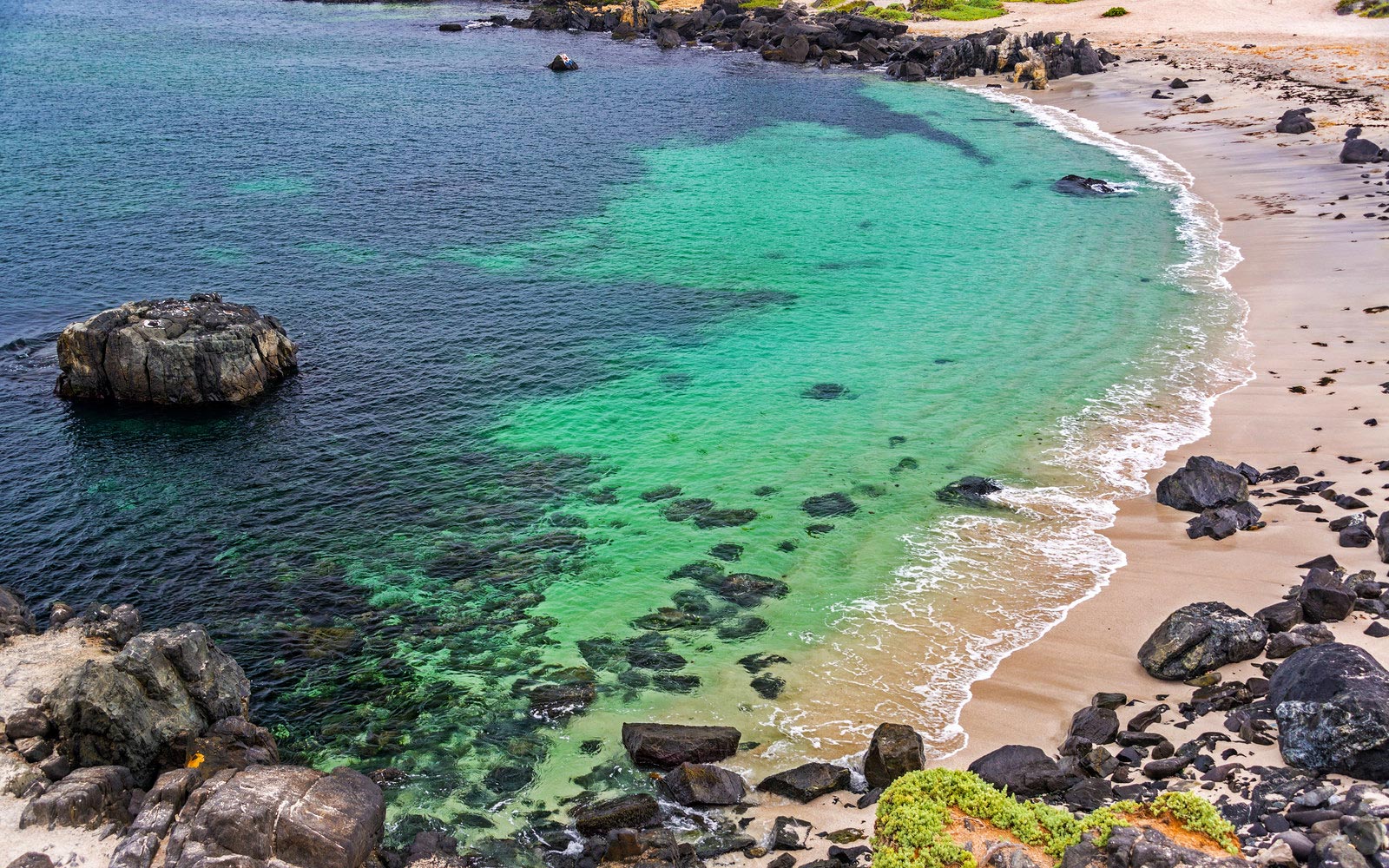 Bahia Inglesa ("English Bay") is a village and beach located near the port of Caldera in Atacama Region, Chile. With a population of 135 inhabitants (census 2002), it owes its name to the visit of the English privateer Edward Davis. Bahia Inglesa is renowned for its white sands and warm waters, as well as its accommodations. Campgrounds, hotels, restaurants and summer houses offer lodging to visitors. Some of the better known beaches are La Piscina (The Swimming Pool), Las Machas (The Clams), Playa Blanca (White Beach) and El Chuncho (The Owl). The place in addition enjoys a year-round mediterranean climate.