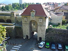 The Bastille is the name of a fortress culminating at 476 m above sea level, located at the south end of the Chartreuse mountain range and overlooking the city of Grenoble, France. The Bastille, which also gives its name to the hill, is the main tourist site of the Grenoble area with 600 000 visitors per year.